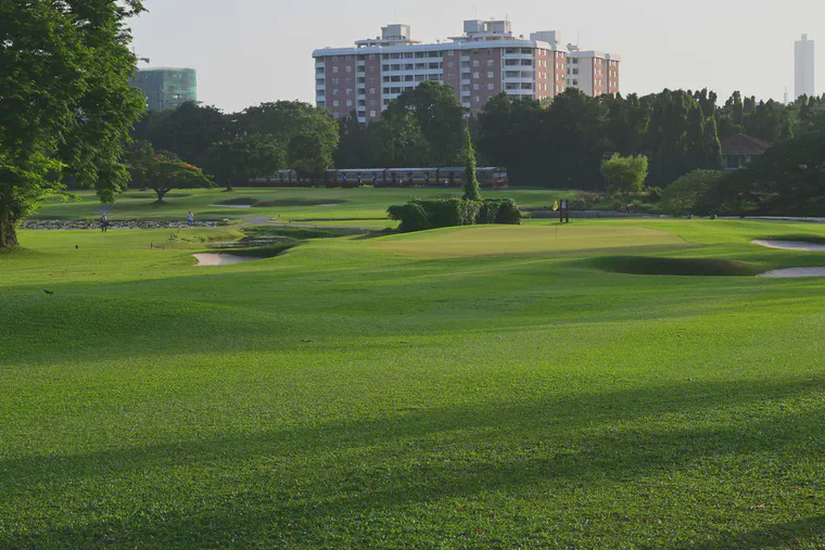 June, A train and a tropical carpetgrass (Axonopus compressus) fairway and ‘Tifeagle’ bermudagrass greens at Royal Colombo Golf Club.