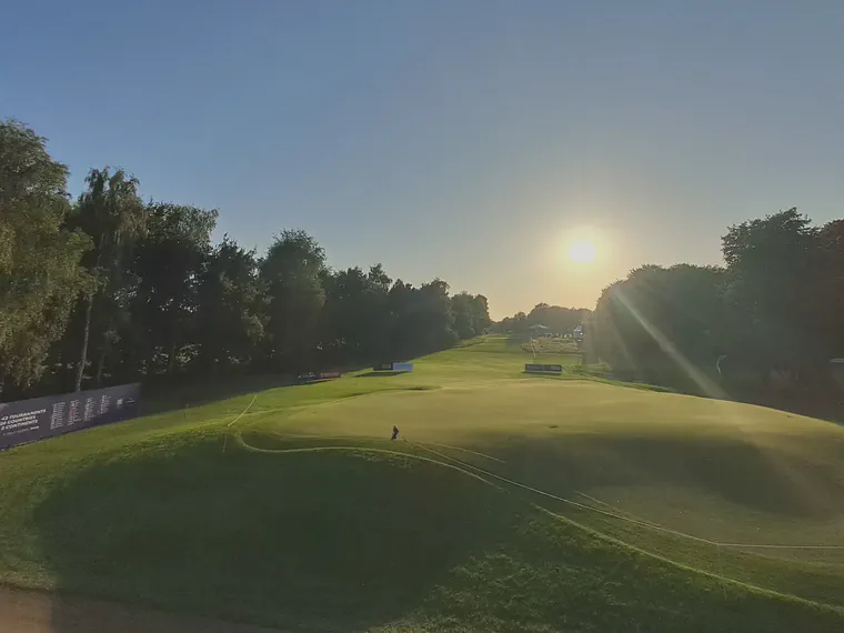 August, I went to Copenhagen for a week to collect data at Furesø Golfklub during the DP World Tour’s Danish Golf Championship. The course was in excellent condition and the weather during the week was superb, as this photo of the 9th green (Agrostis canina & Festuca rubra spp.) just before sunset makes clear.