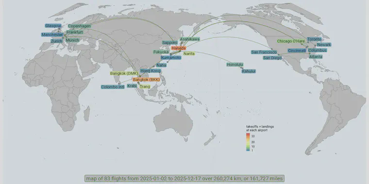 In 2025, I took 83 flights, covering 260,274 km.