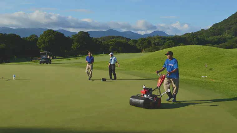 The fairways and tees at Keya GC are also korai (manilagrass), and the roughs are noshiba (Zoysia japonica)